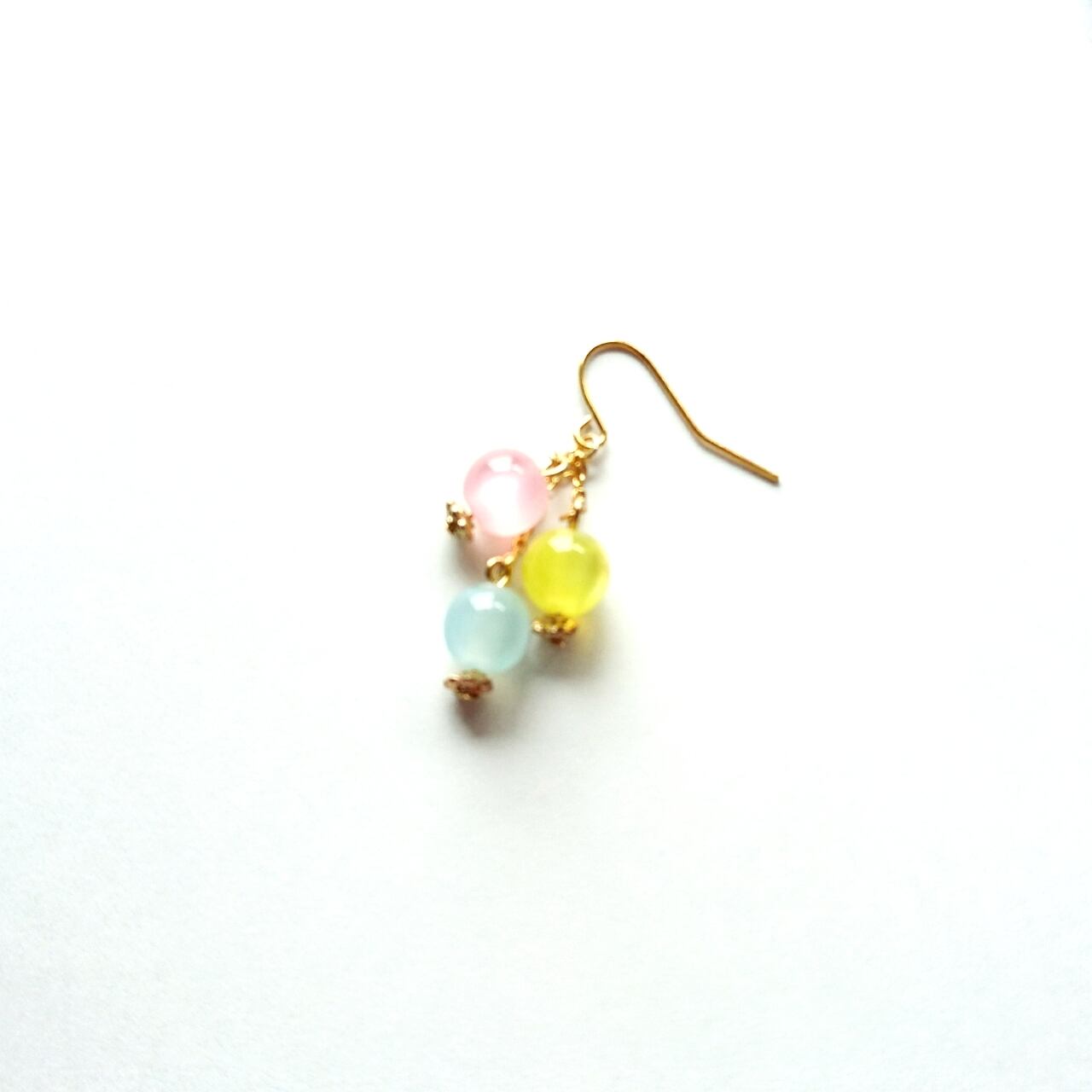 花火大会のときピンク・黄色・青の花火を見て思いついたピアスです。