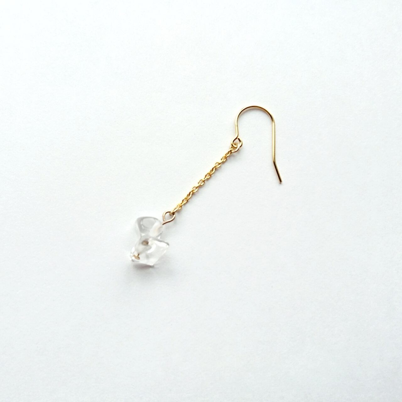 透明で綺麗な石なのでどんな服にも合わせやすいピアスです。